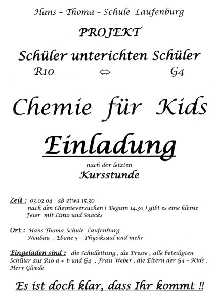Hans-Thoma-Schule, Laufenburg: Projekt "(Chemie-)Experimente für Kids"